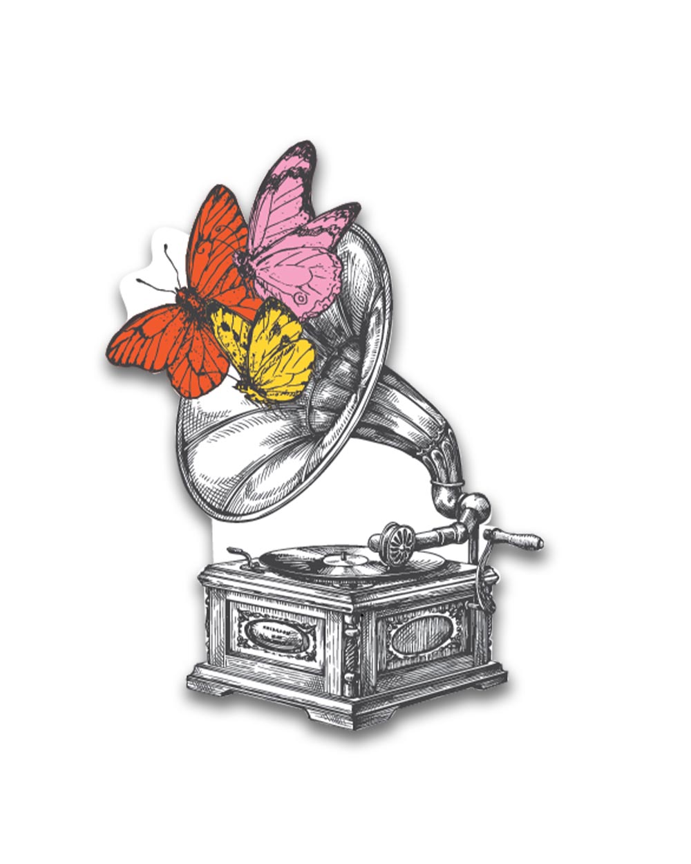 JAZZY-FLY, broška iz pleksi stekla s potiskom.