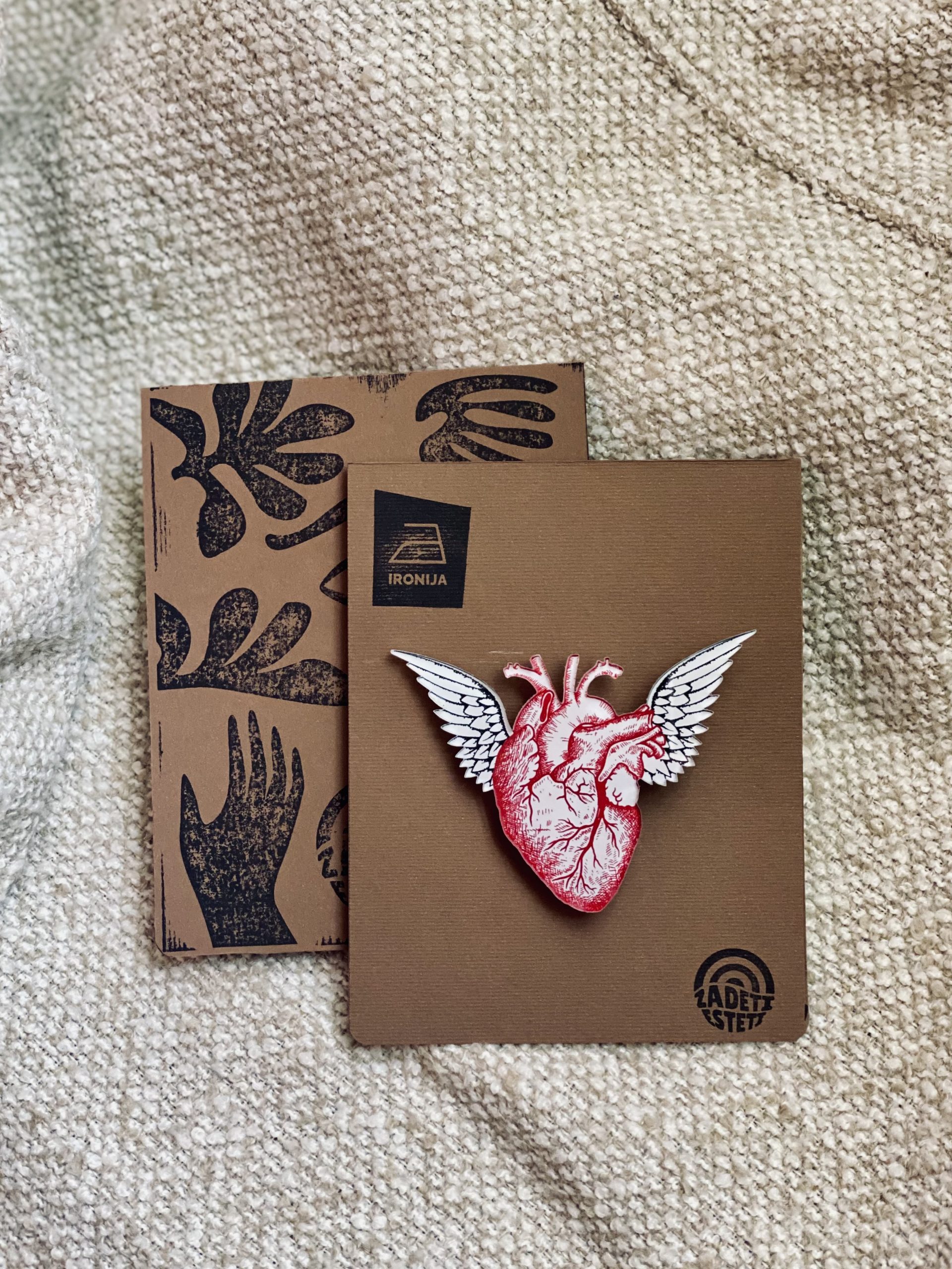 SVOBODNO SRCE, broška iz pleksi stekla s potiskom.