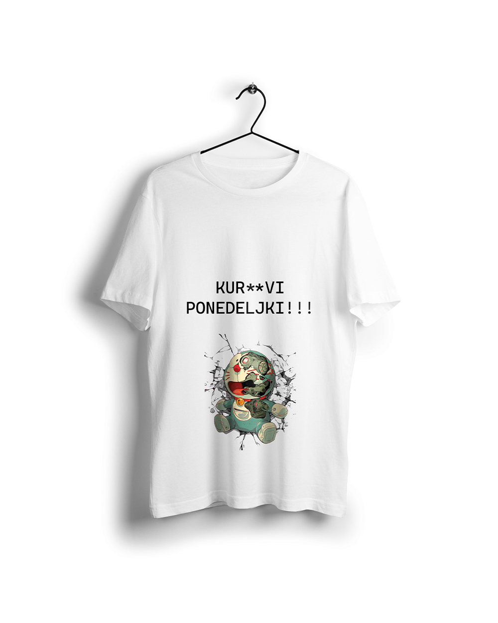 Sestava: 100% bombaž, Potisk: kvaliteten, potisk spredaj in zadaj Vzdrževanje: pranje 30 C, tisk obrnjen navznoter, likanje z nizko temperaturo