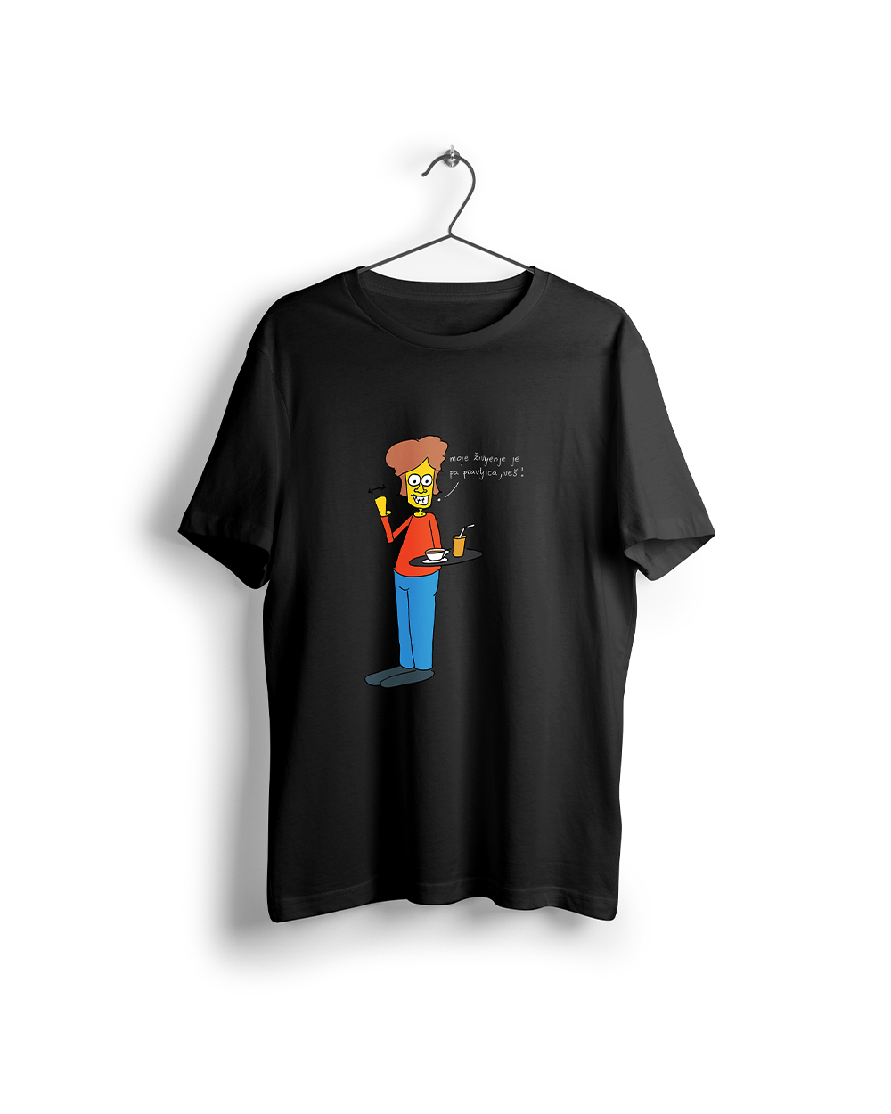 Sestava: 100% bombaž Potisk: kvaliteten, potisk spredaj Vzdrževanje: pranje 30 C, tisk obrnjen navznoter, likanje z nizko temperaturo