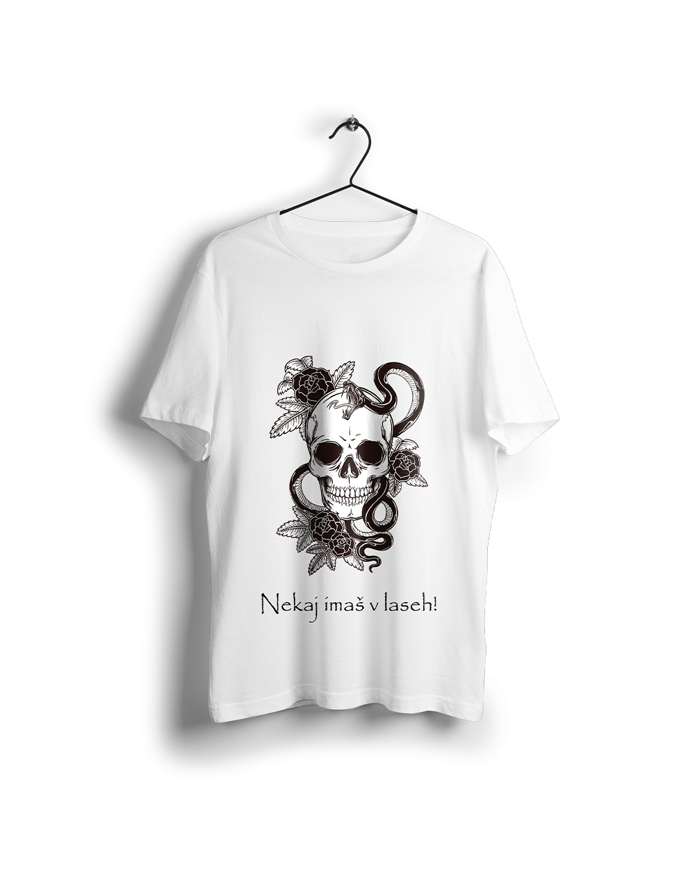 Vzdrževanje: pranje 30 C, tisk obrnjen navznoter, likanje z nizko temperaturo