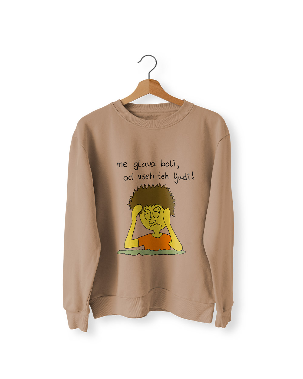 Potiskan, topel pulover z dolgimi rokavi in okroglim izrezom. Znotraj kosmaten. Patent na rokavih in okoli pasu.