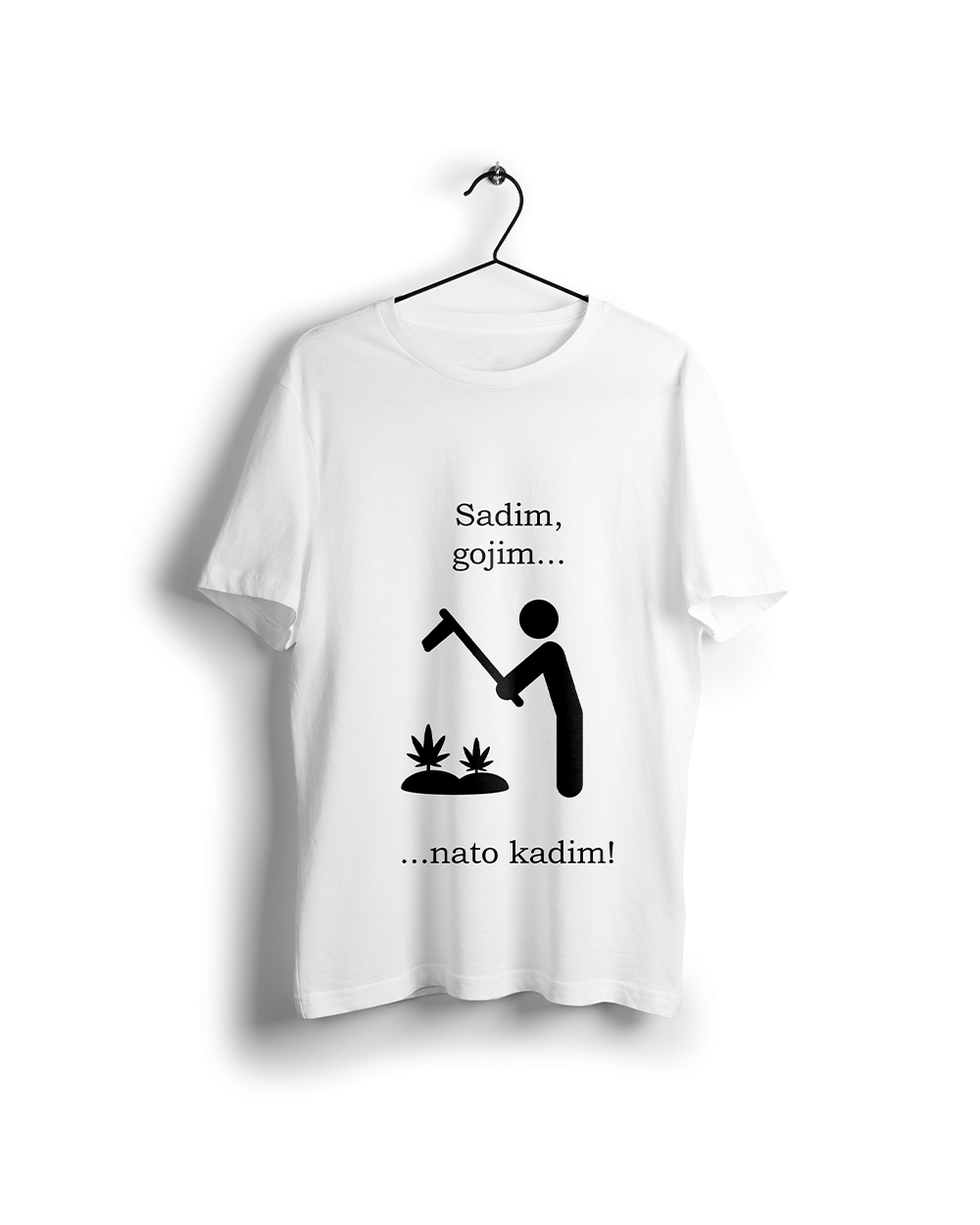 Vzdrževanje: pranje 30 C, tisk obrnjen navznoter, likanje z nizko temperaturo
